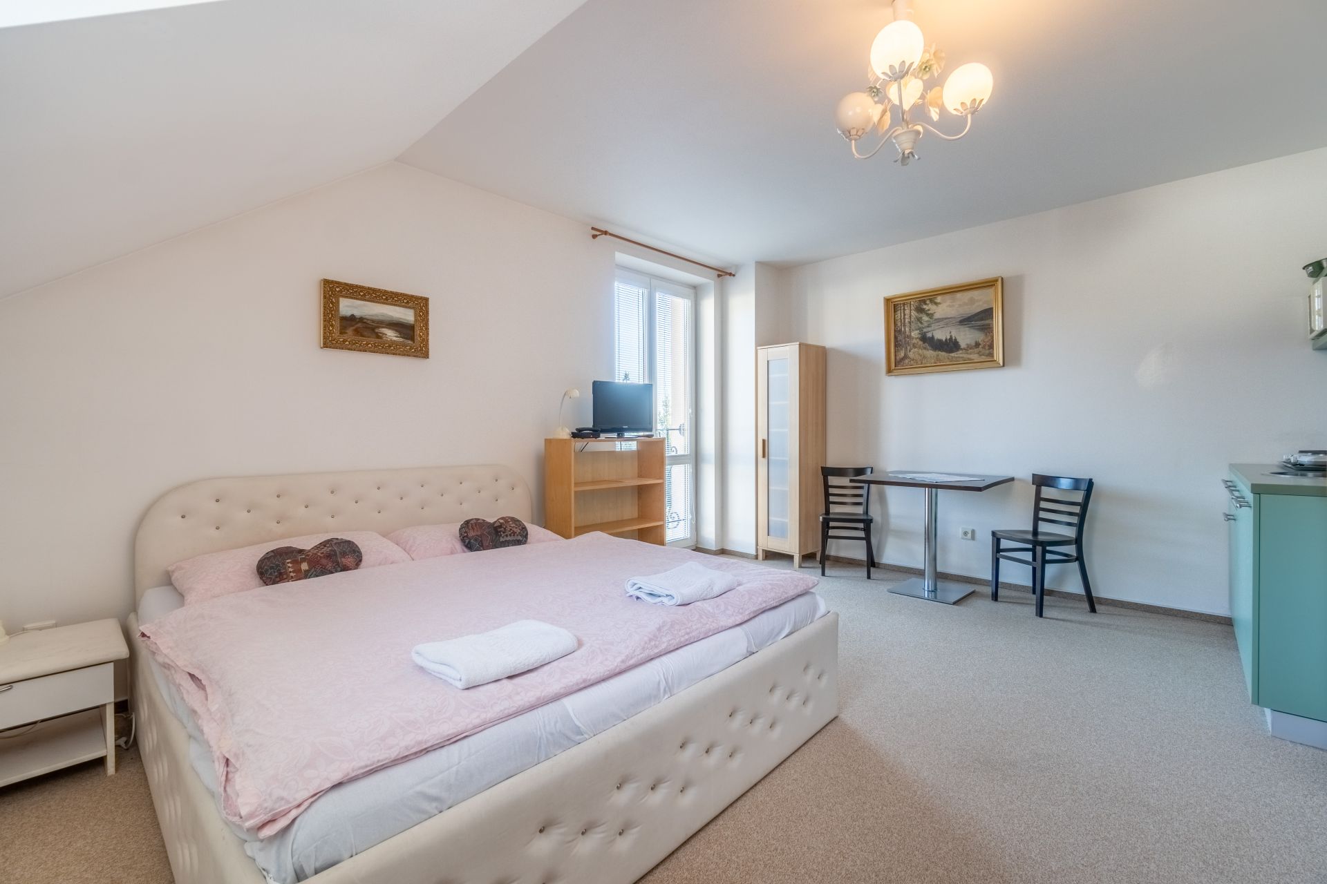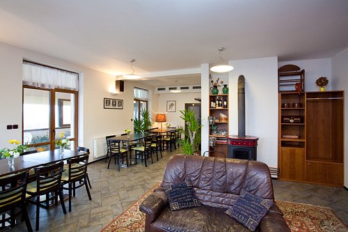 • 1. PP: Soukromý apartmán s obývacím pokojem a krbovými kamny, ložnicí, kuchyní s komorou, koupelnou, šatnou, saunou, technickou místností a prádelnou. Ideální pro provozovatele nebo dlouhodobý pronájem.